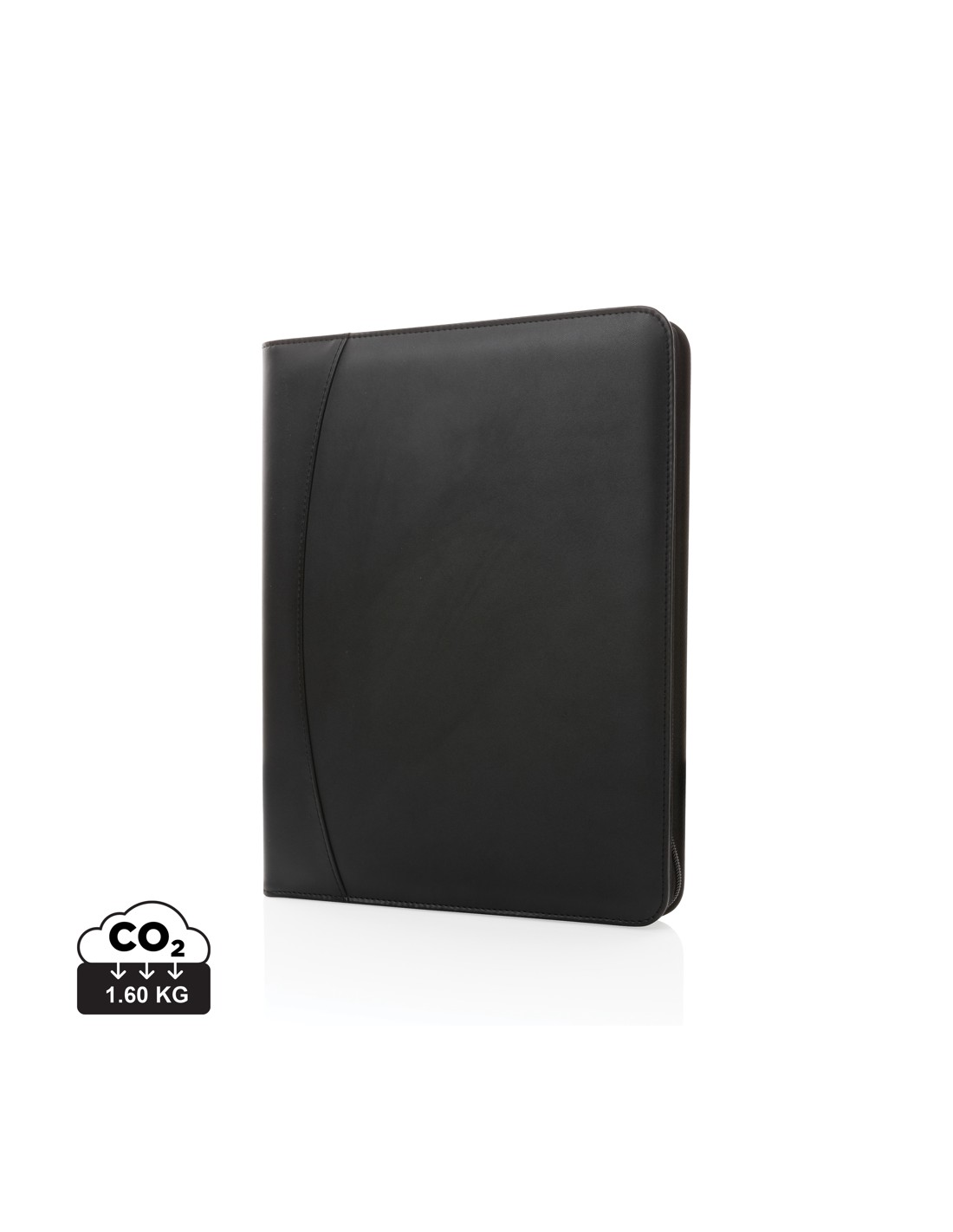 Denne smukke RCS rPU deluxe tech portfolio med lynlås, er lavet med RCS (Recycled Claim Standard) certificerede genbrugsmaterialer. RCS-certificering sikrer en fuldstændig certificeret forsyningskæde af de genanvendte materialer. Den glatte og luksuriøse overflade giver portfolioen et elegant look. Inde i A4-porteføljen kan du finde en foret notesblok på 64 gm/2 genbrugspapir på 20 sider. Indeni er der 1 lomme i telefonstørrelse, en telefonholder, pennesløjfe og 2 visitkortlommer. Lavet med RCS-certificeret genanvendt PU. Samlet genanvendt indhold: 25% baseret på den samlede varevægt. PVC-fri.