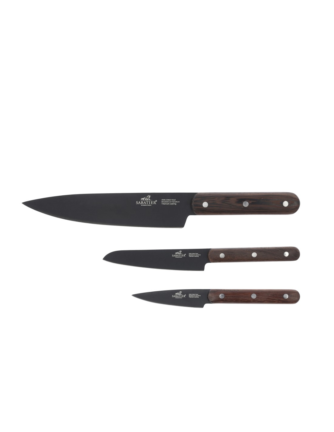 Phenix knivsæt med tre knive i Lion Sabatiers verdenskendte kvalitet og med håndtag i eksklusivt wenge-træ. De superskarpe knivblade er skabt af stærkt rustfrit stål (5Cr15MoV) og belagt med titanium.