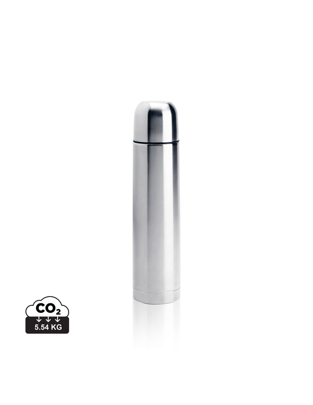 1L flaske i rustfrit stål med dobbeltvæg og tryklukning samt kop.