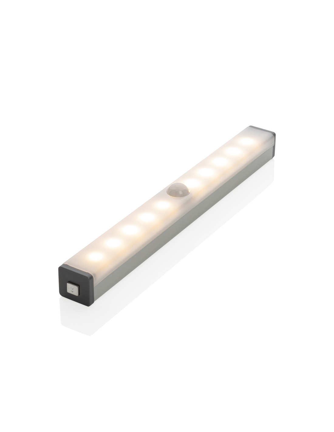 Aluminium LED bevægelses sensor med 10 LED. Magnetisk bagside til at fastgøre den til metaloverflader. 2 magnet mærkater til at fastgøre til ikke magnetiske overflader. Perfekt til brug i garagen, over dit skrivebord, i gangen eller i dit skab. To tilstande: fortsætter eller automatisk sensorregistrering. LED-lampen tændes, når den registrerer bevægelse og slukker efter 35 sekunder, hvis der ikke længere registreres bevægelse. Med 500 mAh litium batteri til fortsat brug op til 4,5 timer, sensorafstand op til 3 meter. Oplades via USB med det medfølgende PVC fri mikro USB kabel.