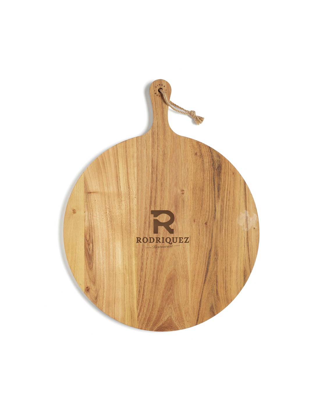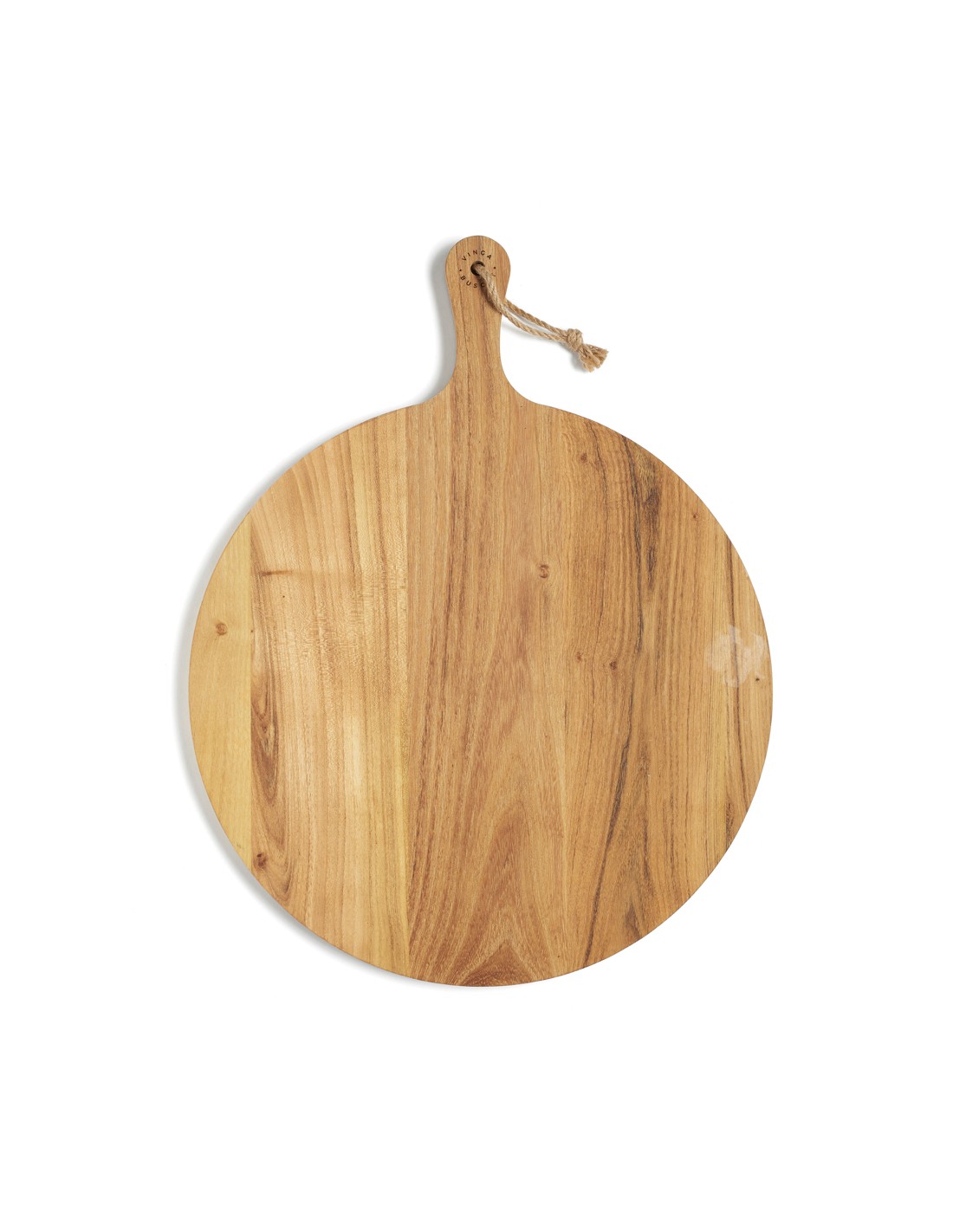 Rundt skærebræt i høj kvalitet, der takket være dets store størrelse og dekorative design, også kan anvendes til servering. Et praktisk håndtag gør håndteringen og serveringen endnu lettere. Brættet er fremstillet af FSC-certificeret teak, der har en smuk gylden eller mellembrun overflade, som bliver mørkere med tiden. Det høje olieindhold giver brættet en effektiv beskyttelse mod råd, og holder det i en fin tilstand i lang tid.