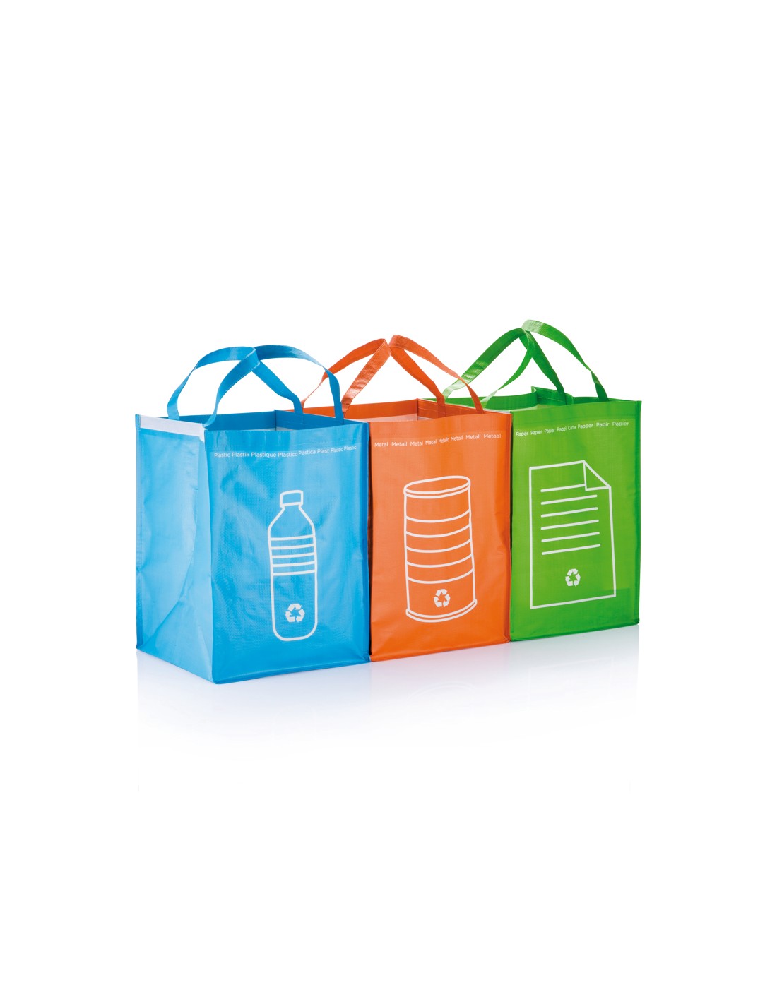 3 poser til at adskille metal, papir og plastik. PP-vævet materiale.